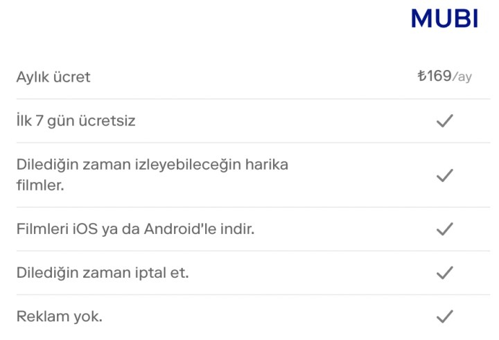 Türkiye’deki kullanıcılar için MUBI fiyatları 2025 yılı itibarıyla şu şekilde güncellendi: